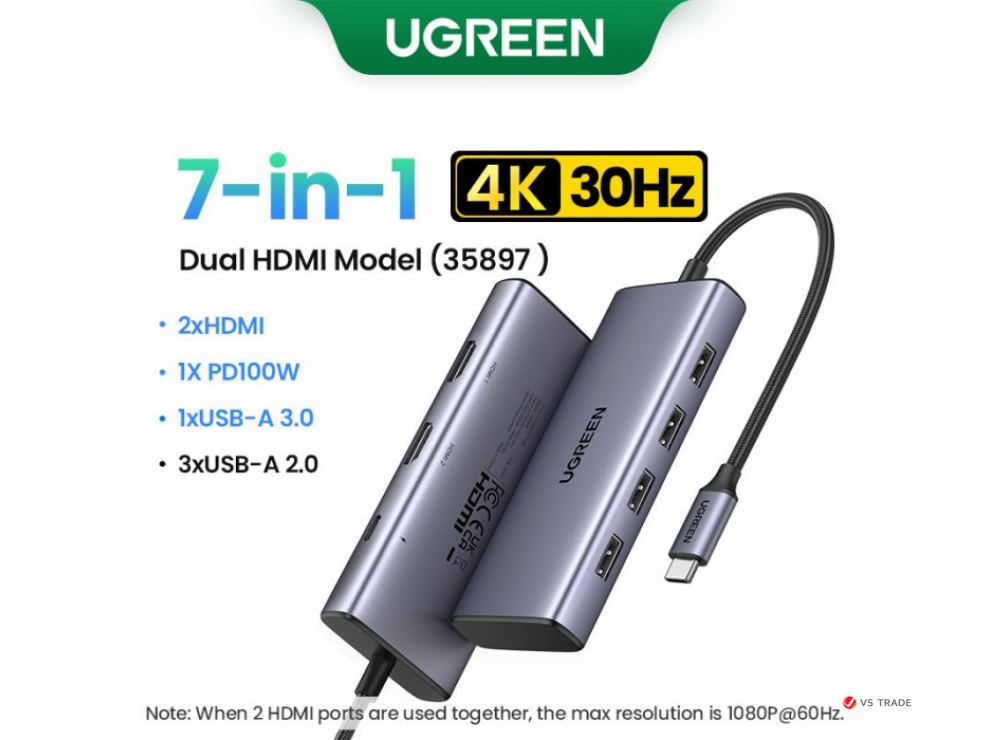 Хаб также поддерживает зарядку ноутбука мощностью 100 Вт через Type-C порт, что обеспечивает быструю и удобную зарядку дома, в офисе или в дороге. Один из HDMI-портов поддерживает видео до 4K при 30 Гц, а при подключении двух мониторов можно выводить изображение в разрешении 1080P при 60 Гц.