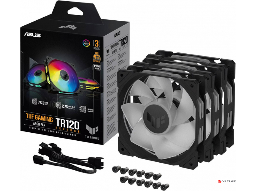 Купить Комплект вентиляторов ASUS TUF GAMING TR120 ARGB REVERSE BLACK 3IN1 оптом в Алматы, Казахстане - интернет-магазин vstrade.kz