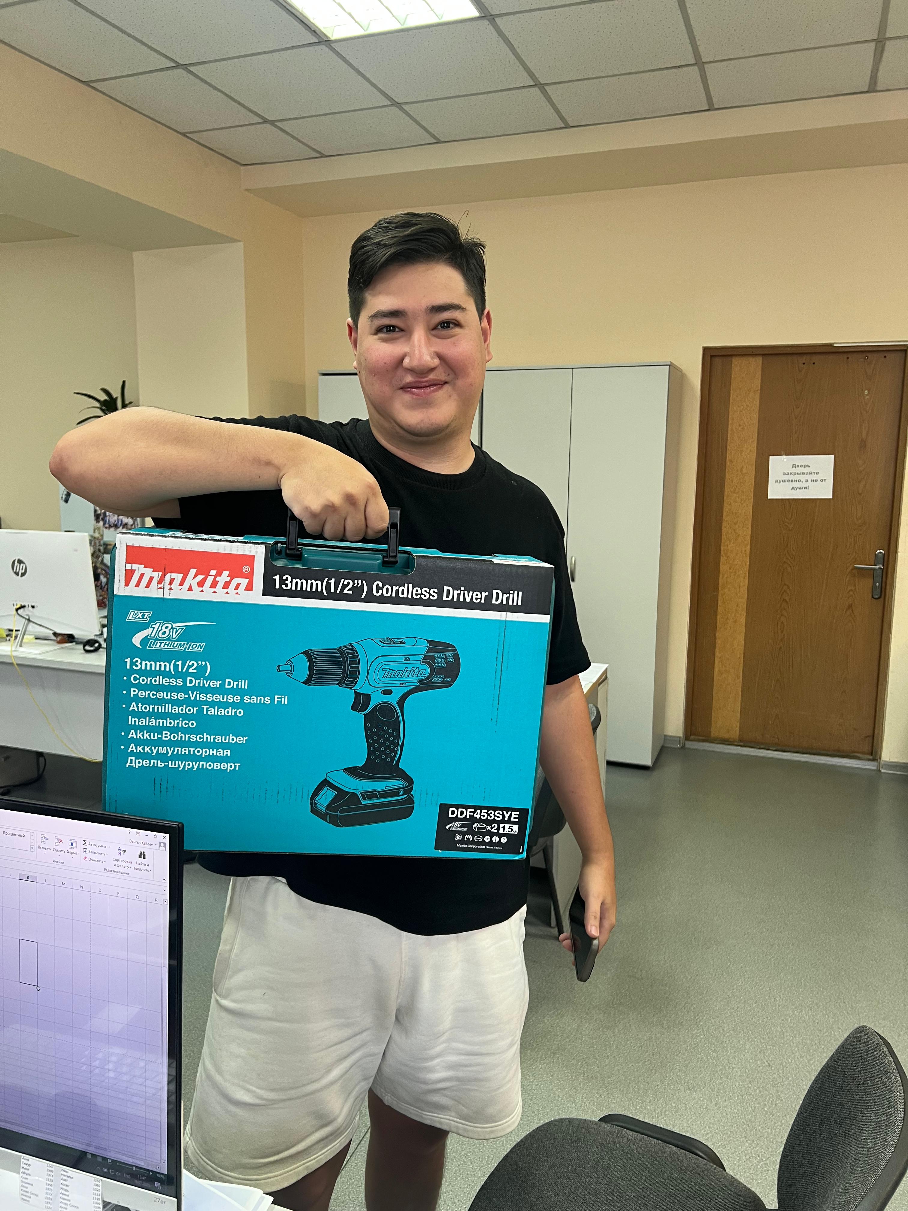 | 1 | C | CACE | 192 | Аккумуляторная дрель-шуруповёрт, Makita, DDF453SYE, Два аккумулятора 18В 1.5Ач Li-Ion, Зарядное устройство, до 13 мм, 50Нм, Синий |
