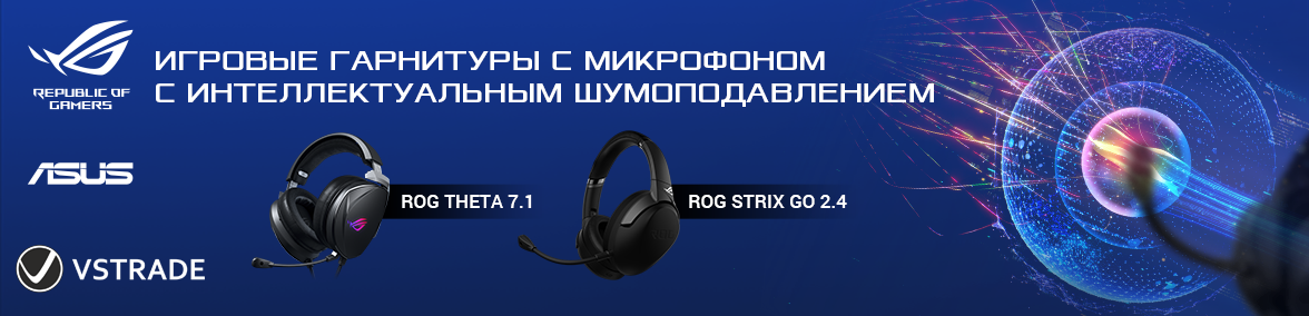 - Технология интеллектуального шумоподавления реализована в микрофонах гарнитур ROG Strix Go, ROG Strix Go 2.4, ROG Strix Go 2.4 Electro Punk и ROG Theta 7.1